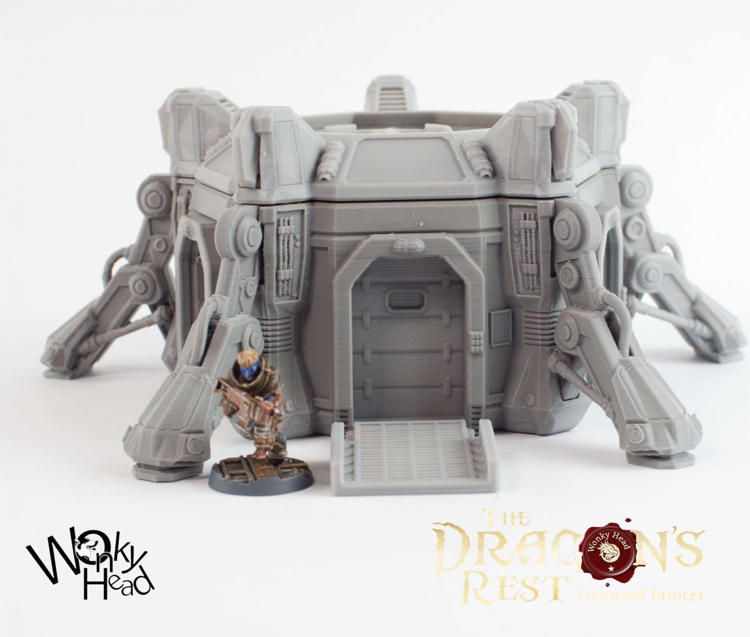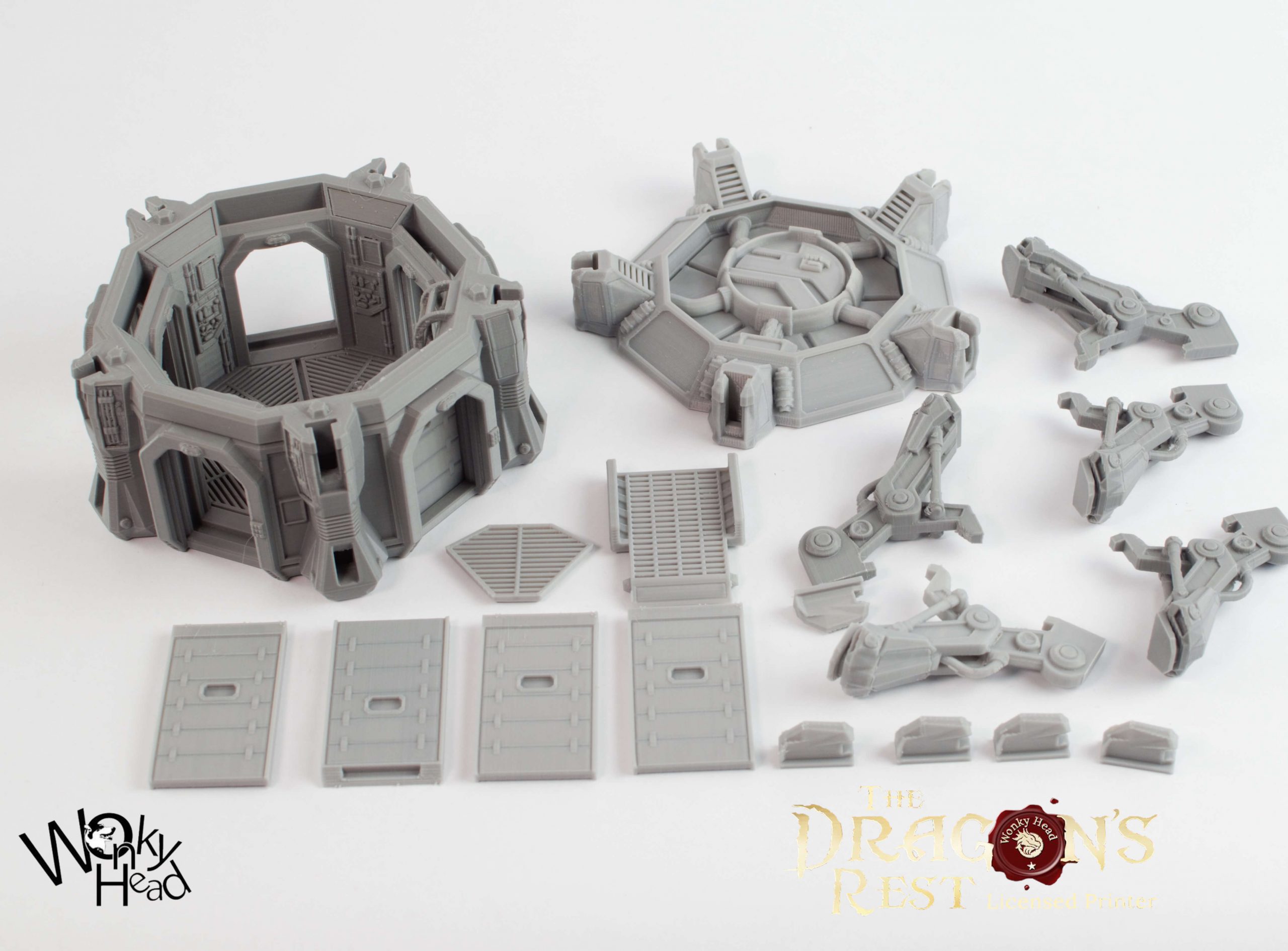 The outpost hub alpha is part of the dragons rest outpost origins sci fi terrain set and looks great on any sci fi game board. The roof also lifts off to reveal the interior.