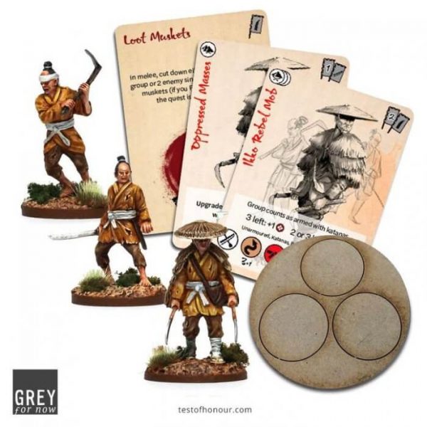 These rebel peasants are armed with a variety of weapons (counting as katanas in a group). The Oppressed Masses trait makes them particularly dangerous against samurai class enemies.