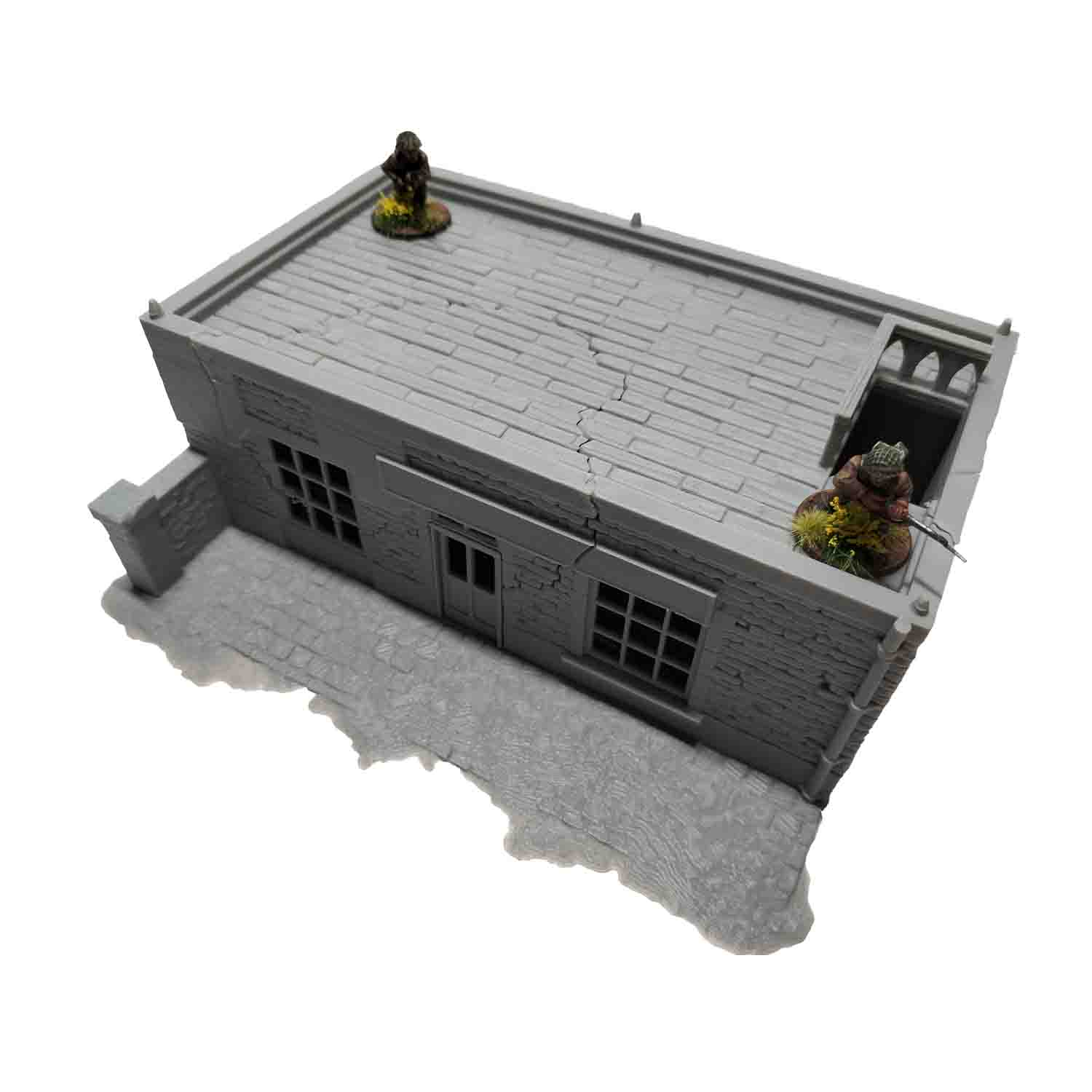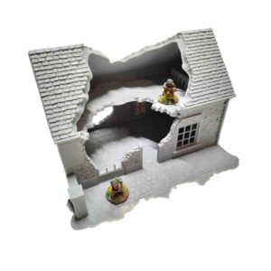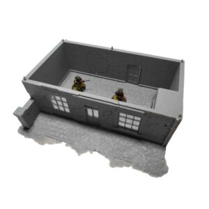 A Fantastic 28mm WW2 themed Cafe for a France/Normandy Game board. This building can be displayed as fully intact or a ruin. A great addition to any WW2 game board.