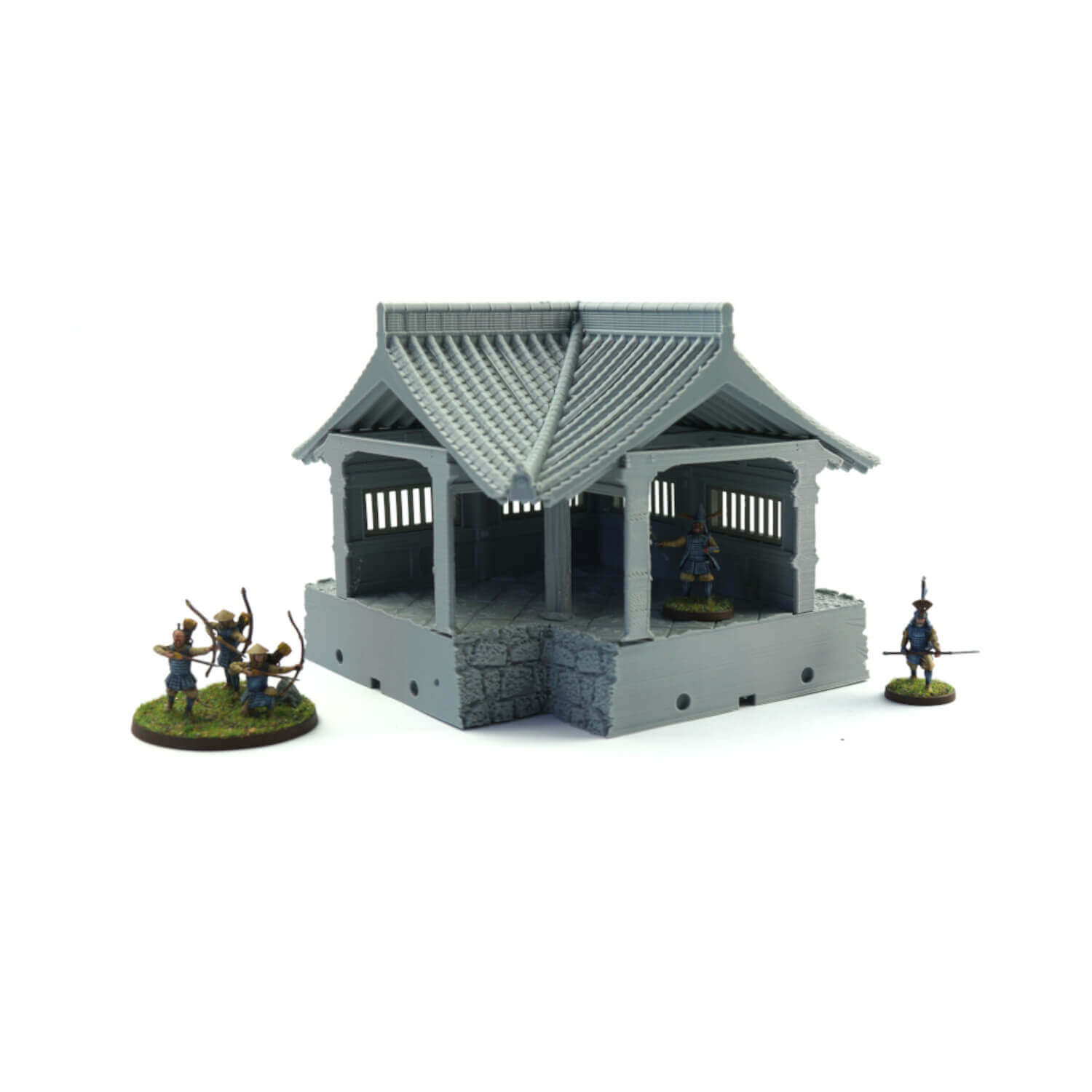 The corner wall is one part of the modular Samurai Temple Walls set.   These can be mixed with other straight sections, corners, gates and the Large outer gate sections.  A single line of these makes a great game board edging or you can go all out and make a board from them.  The roof is removable for interior play also.