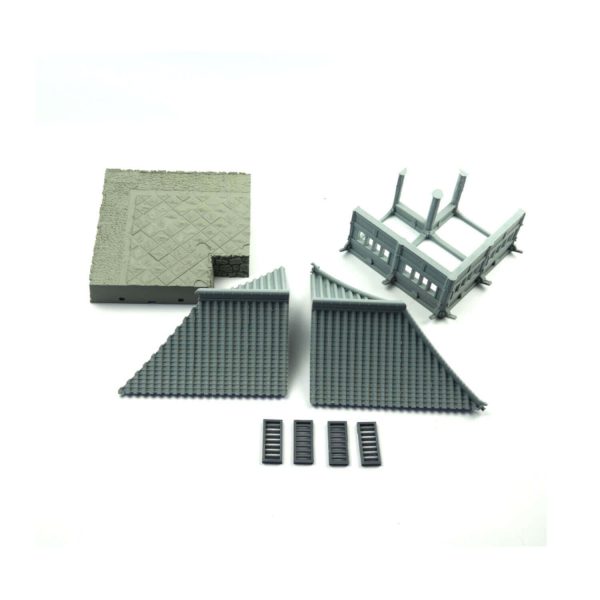 A set of temple walls from old Japan, used to enclose Buddhist temple grounds. The wall sections are 120mm long, and feature a covered walkway inside the walls. Each wall and roof section can be used with the 30mm high base sections, or placed directly on your tabletop.  This item is the Corner wall section, please view the rest of the temple set under the 3d alien worlds printed files category on the website to see the rest of the set,