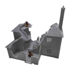 House 2 is one part of the Stone City of Arkenfel and is a great piece of fantasy terrain on it’s own or as part of a game board built from the set. All floors lift apart to allow you to game inside of the terrain as well as around it.